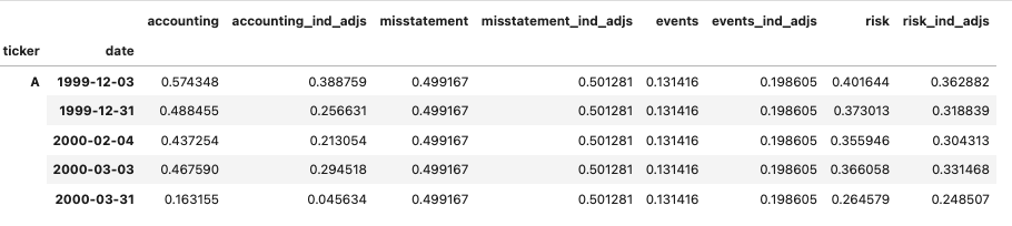 For the misstatements, all of the variables have been changed into negative indicators, so that when the company overreports the financial health and corrects it later on, that is a negative sign.
