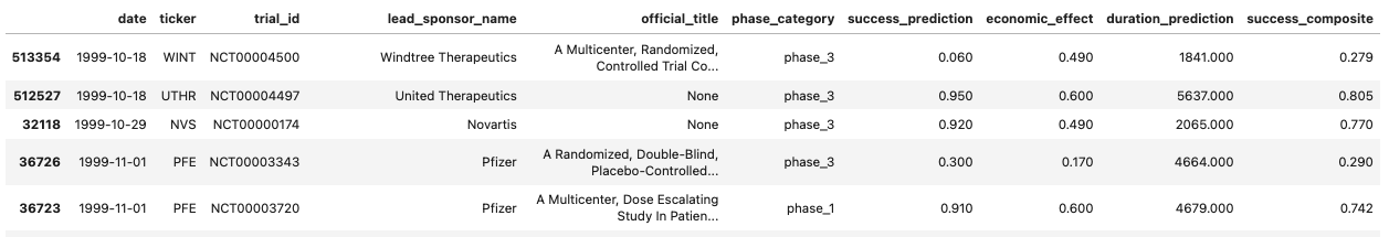 We predict the success of a clinical trial, its duration, and the expected economic impact, including potential market reactions, using state-of-the-art machine learning models. Our solution also provides detailed metadata about each trial that allowed us to predict regulatory phase success and/or approval rate, empowering users to anticipate outcomes with greater accuracy.