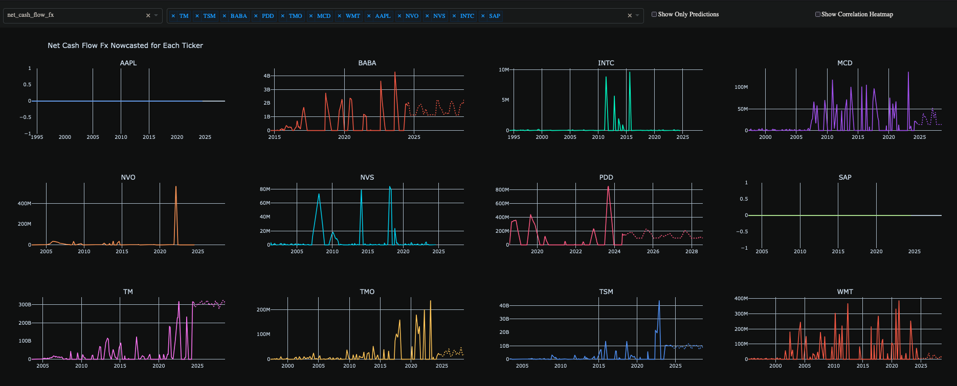 This notebook demonstrates a streamlined approach to nowcasting financial data using the `sovai` library, allowing for quick analysis of accounting metrics for mega-cap stocks.